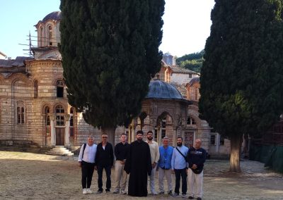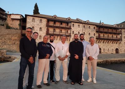 У уторак су се у јутарњим часовима упутили у нашу Свету лавру Хиландар, задужбину Св. Симеона и сина му Св. Саве, коју су подигли својим сународницима као пристаниште спасења. Поклоници су имали прилику да се поклоне чудотворној икони Пресвете Богородице Тројеручице и да учествују у манастирским богослужењима. Поред манастира Хиландара поклоницу су имали прилику да посете и манастир Есфигмен који се налази у непосредној близини.