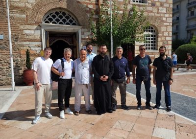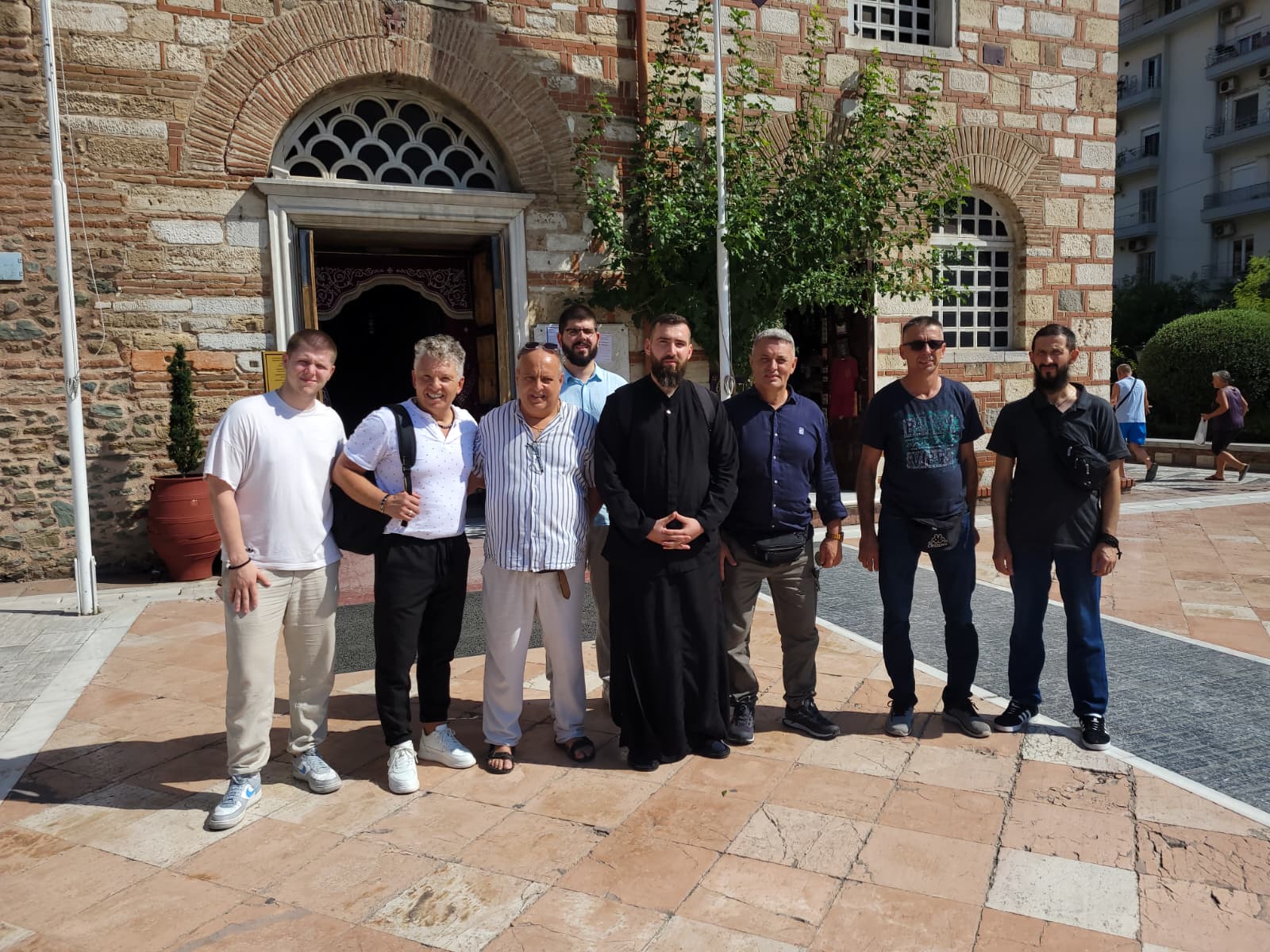 На почетку свог поклоничког путовања, пристигавши у далеки Солун, поклоници су се најпре упутили до Српског војничког гробља Зејтинлика где су се помолили за покој душа свих наших предака који су своје животе дали на бранику отаџбине за Крст часни и слободу златну. У молитвеној шетњи, кроз антички град ходочасници су имали прилику да посете велику солунску светињу, древни храм Св. великомученика Димитрија, где су се поклонили и целивали свете мошти овог великог Светитеља којег наш народ изузетно поштује и прославља. При одласку из Солуна, група ходочасника је имала прилику да се поклони и целива мошти Св. Григорија Паламе у прекрасној цркви његовог имена, одакле наставља своје путовање ка Уранополису.